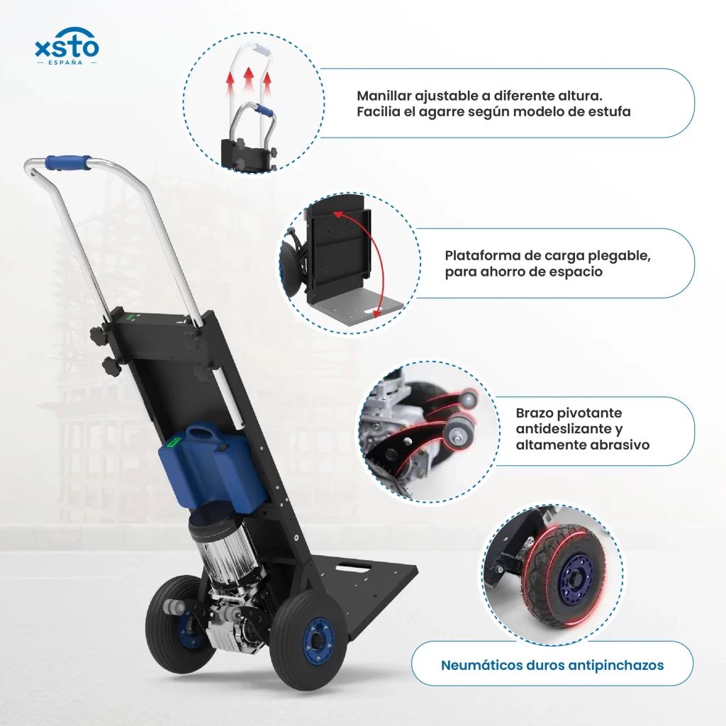 Este carro de cargas tiene ventajas obvias porque combina practicidad y economía. Es ideal para subir y bajar electrodomésticos, muebles, comida, agua, barriles, botellas, bombas de gas, suministros de obras, fotocopiadoras, pellets, estufas, etc. Facilita la subida y bajada de cargas y pesos de manera rápida y segura. Ahorra tiempo y guarda tu salud.
