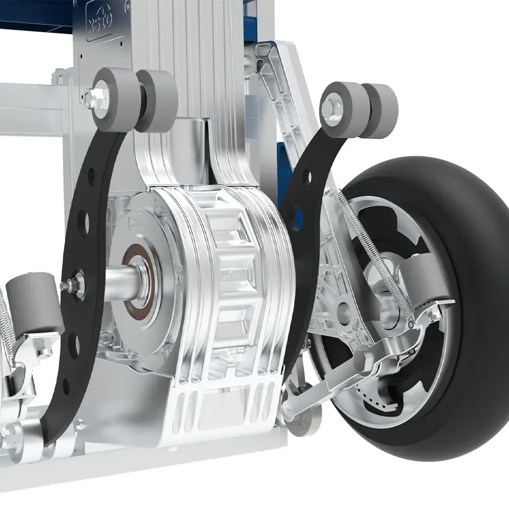 El sube escaleras eléctrico ZW7210GC integra un tren motriz de desarrollo propio con una carcasa de aleación de aluminio. Tiene una estructura fuerte y más duradera, con una capacidad de carga de hasta 210kg. La máquina tiene un sistema de freno de desarrollo propio para evitar el deslizamiento y garantizar la seguridad al subir/bajar escaleras.