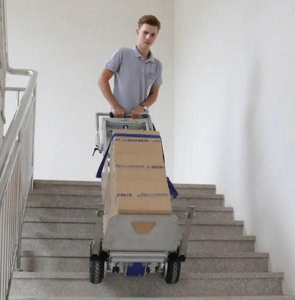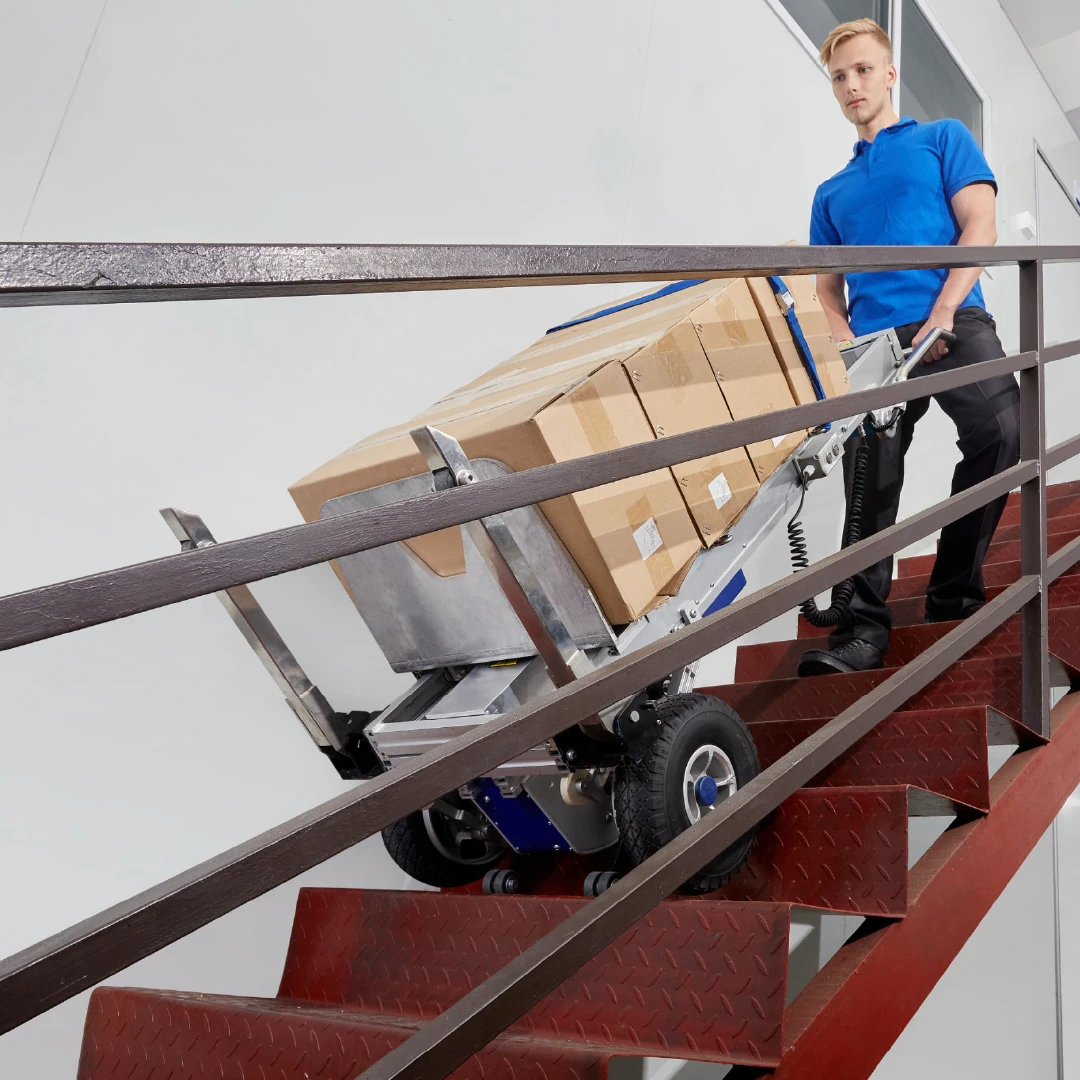 Carrito sube escaleras electrico para subir pesos y cargas por escaleras. Capacidad hasta 170kg. Con plataforma elevadora. Sube en el camión solo.